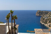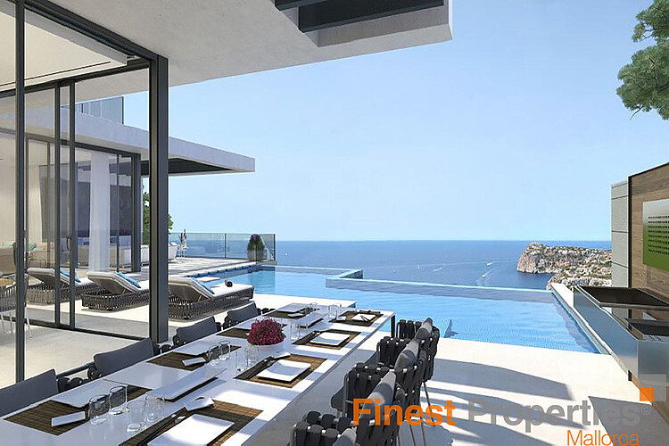 Diese moderne Villa wurde 2023 auf einem ca 1038m² großen Hanggrundstück fertig erstellt und bietet eine atemberaubende Aussicht auf das Meer. Ganz in der Nähe befindet sich das Ortszentrum von Port d’Andratx mit Cafés, Restaurants und dem Jachtclub. Die Villa selbst bietet jeden erdenklichen Komfort. Sie betreten das Haus über eine repräsentative Eingangshalle mit zentraler Treppe und einem Aufzug mit Zugang zu allen Etagen. Die großzügigen Schlafzimmer, alle mit einem fantastischen Meer-Blick, verfügen alle über ein schönes Bad en-suite. Vom Wohnzimmer aus erreichen Sie stufenlos die große Terrasse mit Infinity Pool wie auch eine großzügige Außen Küche. In der Garage finden 6 Autos Platz plus 2 Außen Stellplätze. Die Villa ist mit modernster Technik ausgerüstet u.a. einem umfassenden benutzerfreundlichen Heimautomationssystem, Videotürsprechanlage und elektrischer Türöffner, Liftzugang in jeder Etage der Immobilie, komplett steuerbare Niederspannungs-LED-Beleuchtung in allen Wohnräumen, Zimmerunabhängige VRV-Klimaanlage von Daikin in allen Schlaf- und Wohnräumen, Fußbodenheizung in allen Wohnräumen, Wasserenthärtungs- und Wasserreinigungssystem und eine rahmenlose Gasfeuerstelle,.