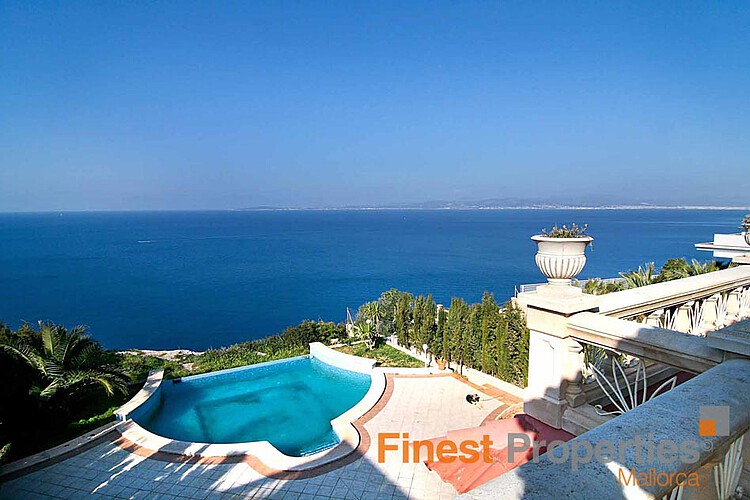 Die hochwertig ausgestattete Villa befindet sich auf einem Grundstück von 1.000 m2 in erster Meereslinie oberhalb der Klippen von Bahia Grande. Auf einer Wohnfläche von 450 m2 und auf 2 Wohnebenen verteilt, befinden sich eine Eingangsgalerie, Büro, Wohn- Esszimmer mit Kamin, Küche mit Arbeitsräumen, 5 Schlafzimmer, 3 Bäder und Heimkino. Die Hauptschlafzimmersuite mit großem Umkleideraum, Luxusbad mit Jakuzzi und Privatterrasse genügt höchsten Ansprüchen. Besonders reizend ist das Turmzimmer mit Zugang zur Dachterrasse. Der Garten mit Swimmingpool und Terrassenfläche bietet einen grandiosen Meerblick.