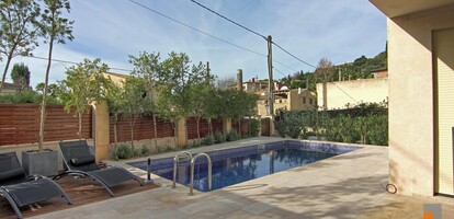 Die sehr schöne moderne Villa befindet sich im Kern vom begehrten Calvin. Die Villa ist eine Wohlfuehloase mitten im Dorf, ausgestattet mit modernster Technik wie Soundsystem in allen Räumen wie auch entspannendes LED Licht. Für das Haus wurde nur beste Qualität verwendet wie Holzfenster Doppelverglasung mit elektrischen Rollläden der Fussboden aus sehr hochwertigem Marmor „Antigua“, auch die Küche „Miele“ lässt keine Wünsche offen. Die Wohnfläche von 190m2 erstreckt sich über drei Stockwerke, im Erdgeschoss befindet sich der Großzügige Wohn-Esszimmerbereich mit einer Raumhöhe von 6m sowie der erwähnten Wohnküche, das Master Schlafzimmer mit Bad Toilette findet man ebenfalls im Erdgeschoss, Das Obergeschoss umfasst zwei weitere Schlafzimmer eines mit Sonnentrasse und ein Bad. Im Untergeschoss befinden sich neben separat zugänglichem Gästeapartment ein weiterer Raum für Sauna und Wellness. Erholen kann man sich im sehr schön angelegten Garten sowie dem entspannenden Polobereich mit überdachter Terrasse. Des weiteren verfügt das Haus über Bodenheizung verbaute Zentralklimaanlage, Wasseraufbereitungsanlage sowie Wärmepumpe.