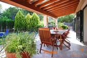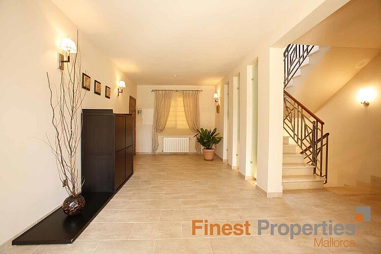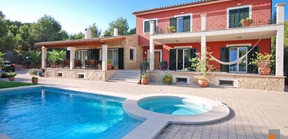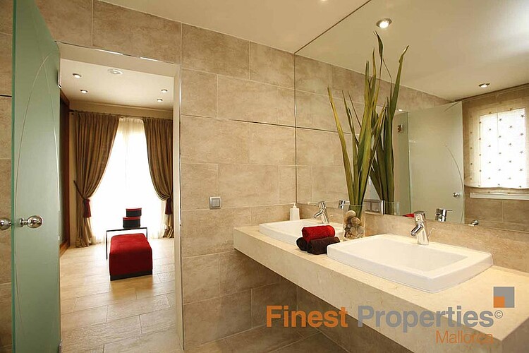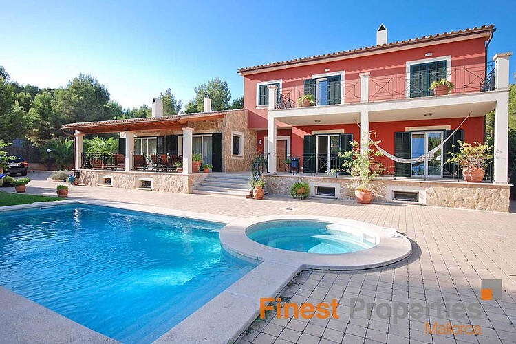 Diese mediterrane Villa mit südlicher Ausrichtung verfügt über eine konstruierte Fläche von 470 m², welche sich auf 3 Etagen verteilt. Das Erdgeschoss mit großzügig geschnittenen Terrassen verfügt über den Eingangsbereich, Wohnzimmer mit Kamin, offene Wohnküche, Doppelschlafzimmer mit Bad en suite und ein weiteres Schlafzimmer mit separatem Bad. In der oberen Etage befinden sich das Hauptschlafzimmer mit Ankleidebereich, Bad en suite und Privatterrasse sowie 2 weitere Schlafzimmer mit einem Badezimmer. Der licht- und luftdurchflutete Keller von 160 m² wurde hochwertig ausgebaut und verfügt über einen Billardraum, mallorquinische Küche mit Ofen und Grill, Weinkeller, verschiedenen Hauswirtschafts- und Abstellräumen sowie ein Gästezimmer und Badezimmer. Die Innengestaltung der Villa entwarf der renommierte Designer Guillermo Blanco. Das Gartengrundrundstück von 2.019 m² mit Obstbäumen und Rasenfläche umschließt den Poolbereich mit separatem Jacuzzi. Eine Doppelgarage und verschiedene PKW-Stellplätze sind Teil des Eigentums.