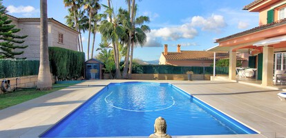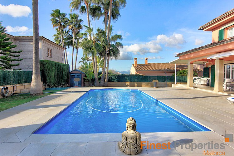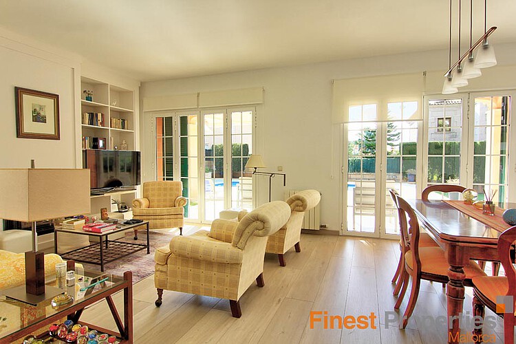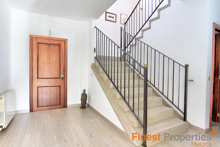 Dieses gepflegte Einfamilienhaus legt in der begehrten Wohnlage von Sant Marcal in der Gemeinde Marratxi und steht auf einem ca 820m² großen Grundstück. Es wurde im Jahr 2000 erstellt und hat 2023 neue Badezimmer und einen neuen Thermobehälter erhalten. Die ca 275m² Wohnfläche verteilt sich auf 2 Wohnetagen mit Wohnzimmer, Wintergarten / Esszimmer, Küche, Hauswirtschaftsraum, Dispensa, 4 Schlafzimmer und 2 Badezimmer. Zur Ausstattung gehören eine Gas-Zentralheizung (Radiatoren) eine Klimageräte w/k in allen Räumen, Einbauschränke in den Schlafzimmern mit Teakholztüren, Außenmarkissen, Alu Fensterläden und eine Einbauküche. Im angelegten, gepflegten Garten befindet sich noch ein Außenpool mit Salz/ Desinfektion. 1 Auto findet Platz in der Garage. Ideales Haus für Familien mit Kinder für ganzjährige Bewohnung sehr gut geeignet. In unmittelbarer Nähe befinden sich Schulen, Sportanlagen, Baumarkt und verschiedene Supermärkte. Das Fashion Outlet Center ist nur 2 km entfernt.