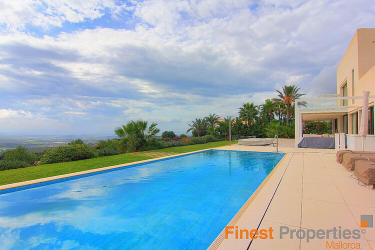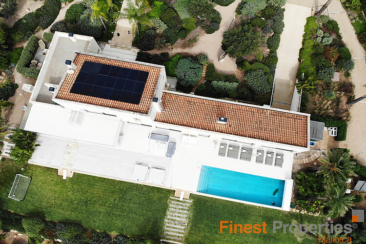 Die Villa „Sa Casa Blanca“ thront exponiert auf einer Bergzunge in der begehrten Urbanisation Puntiró und präsentiert sich als architektonisches Meisterwerk moderner Baukunst. Von hier eröffnet sich ein spektakulärer Panoramablick über das Meer, die Hauptstadt Palma und das majestätische Tramuntana-Gebirge. Das Anwesen erstreckt sich über drei Etagen und beeindruckt durch großzügige Wohn- und Schlafbereiche sowie einen vollständig ausgestatteten, elegant integrierten Office Bereich. Mittelpunkt des Außenbereichs ist der imposante 12 x 4 Meter große Infinity-Pool, der den Blick frei gibt auf Palma und das glitzernde Mittelmeer. Der über 7.000 m² umfassende, mediterran gestaltete Garten ist stimmungsvoll beleuchtet und lädt zum Flanieren und Entspannen ein. Weitläufige Terrassenbereiche mit luxuriösen Daybeds bieten perfekte Rückzugsorte – hier bleiben keine Wünsche offen. Auch im Innenbereich setzt sich das exklusive Ambiente fort: Designermöbel, modernste Haustechnik und sorgfältig kuratierte zeitgenössische Kunstwerke schaffen ein Wohngefühl von außergewöhnlicher Eleganz. Die offen gestaltete Designerküche begeistert mit großzügigem Raumkonzept und professioneller Ausstattung – ein wahres Paradies für anspruchsvolle Hobby- und Privatköche. Weiter 35m² Dachaufbau wären möglich.