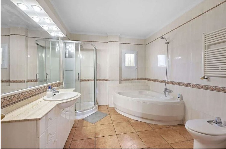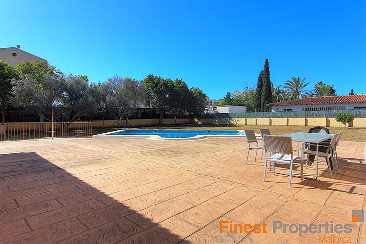 Dieser Bungalow befindet sich auf einem flachen ca 2.400m² großen Grundstück in zentraler Lage in Santa Ponsa. Zum Supermarkt und diversen Restaurants und Caffee´s sind es nur 5 Gehminuten. Dieser Bungalow wurde 1998 erstellt und bietet auf ca 270m² Wohnfläche ein großes lichtdurchflutetes Wohn-Esszimmer, eine geräumige Essküche mit Speisekammer, 6 Schlafzimmer und 4 Badezimmer. Im Untergeschoß. Mit ca 270m² befinden sich die Pooltechnik, die Ölzentralheizung, Pufferspeicher für Warmwasser (über Solaranlage) und eine große Garage. Im Erdgeschoss hat es ausreichen Platz für einen Partyraum, Fitnessraum, Spa oder Heimkino. Zur Ausstattung gehören eine Klimaanlage w/k, Klimalit Alufenster, Solaranlage für Warmwasser und eine Ölzentralheizung (Radiatoren. Im flachen Garten hat es einen 10x5m großen Pool umgeben von einer Liegeterrassen. Der Bungalow kann noch um eine weitere Etage erweitert werden und wird unmöbliert verkauft