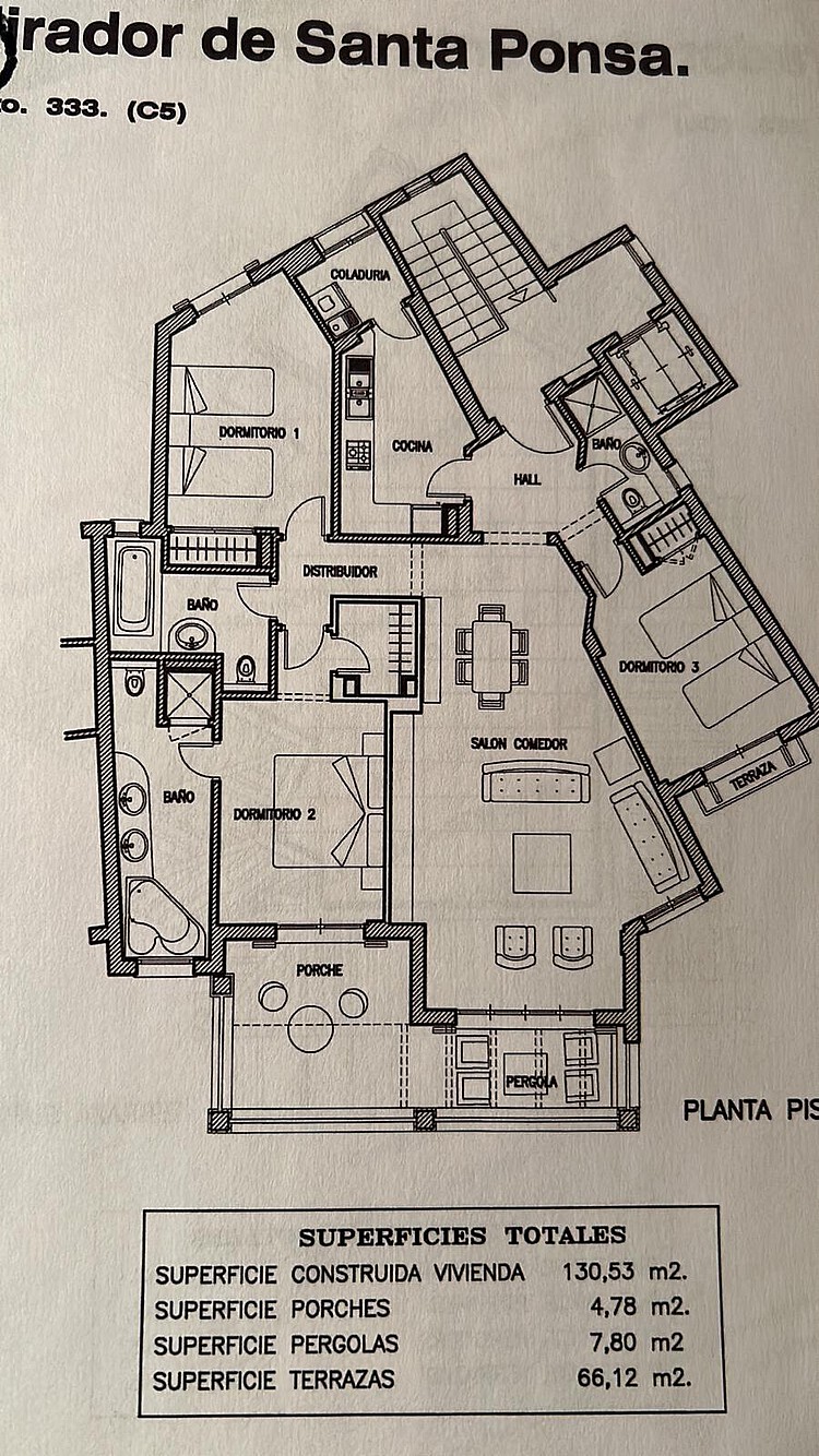 Die Wohnung hat eine Wohnfläche von ca. 160 m2 und besitzt 3 Schlafzimmer mit 2 Bädern.