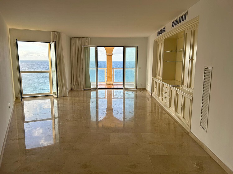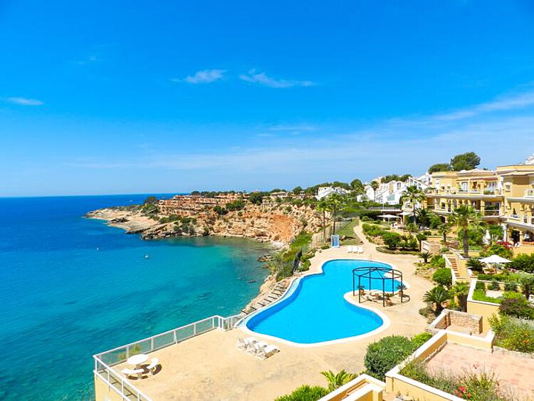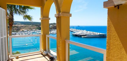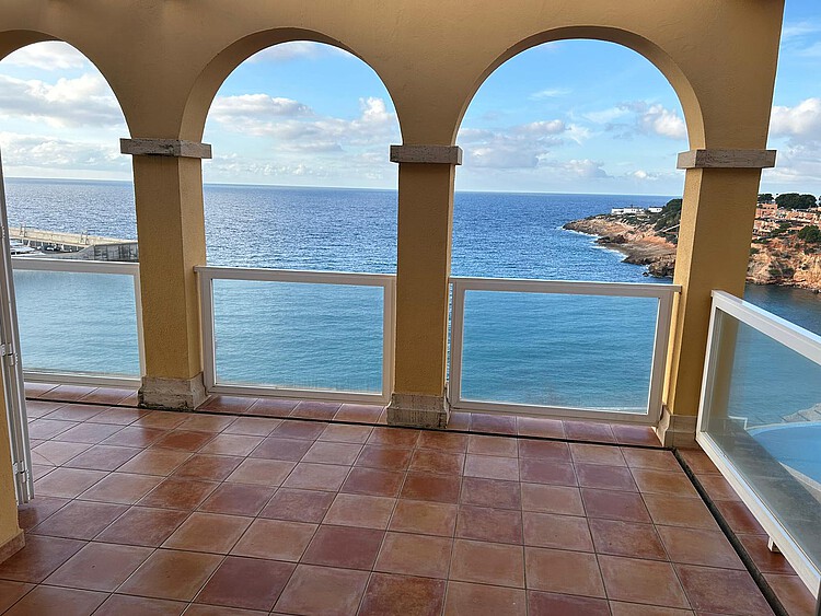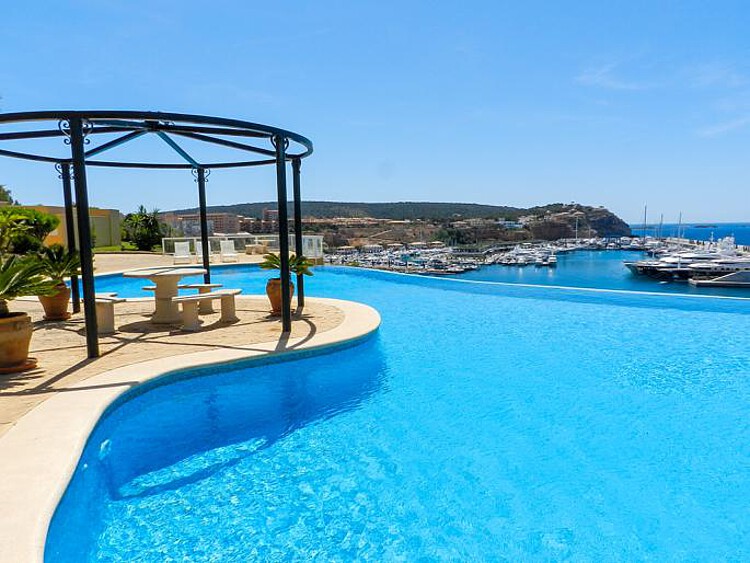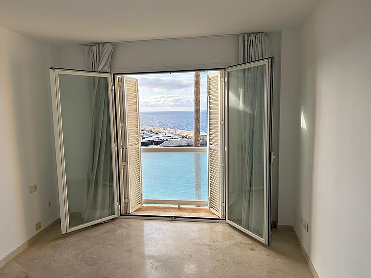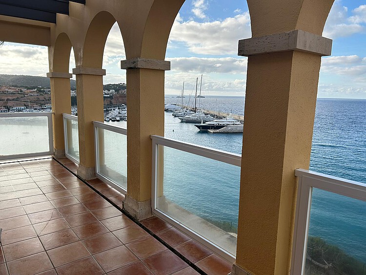 Unmöblierte Wohnung mit fantastischem Meer- und Hafenblick, ausgestattete Küche, Klimaanlage w/k, Großzügige Terrasse, Parkplatz, Abstellraum, Gemeinschaftspool.