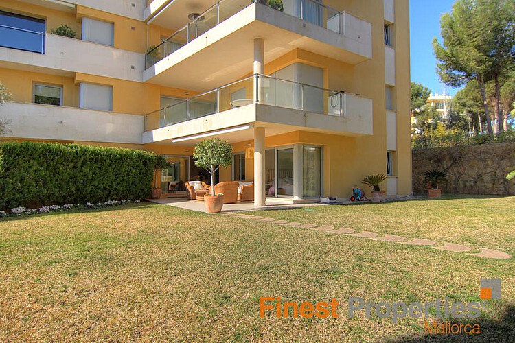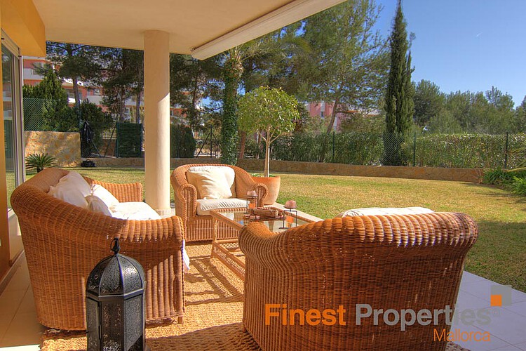 Diese attraktive Gartenwohnung befindet sich in einer sehr gefragten Residenz mit fantastischem Swimmingpool in Sol de Mallorca. Die Wohnung verfügt über eine Wohnfläche von ca. 200 m², eine überdachte Terrasse von ca. 20 m² und einen fabelhaften Privatgarten von ca. 400 m². Der Wohnbereich teilt sich auf in ein sehr großzügiges Wohn- und Esszimmer mit Terrassenzugang, einen Essbereich, eine komplett ausgestattete Küche mit angeschlossenem Hauswirtschaftsraum, ein separates Badezimmer sowie 4 Schlafzimmer mit 3 Bädern en suite. Zwei Schlafzimmer verfügen des Weiteren über einen Terrassenzugang.