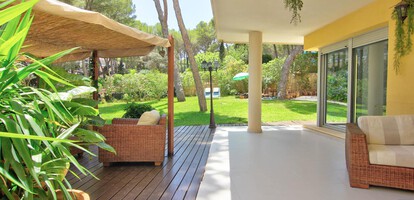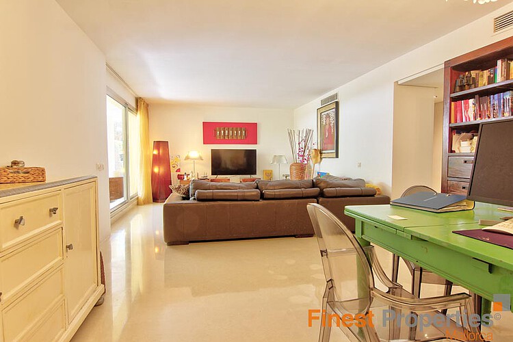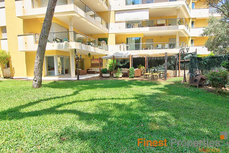 Sol de Mallorca liegt im Südwesten Mallorcas und gehört zur Gemeinde Calvia. Die sehr beliebte Wohnanlage wurde 2007 erstellt und befindet sich nur wenige Fahrminuten von Golfplätzen, idyllische Badebuchten, Supermärkten und internationalen Schulen entfernt. Die Erdgeschosswohnung ist ideal für Familien mit Kindern, denen ein großer privater Garten zum Spielen zur Verfügung steht. Die ca 178m² Wohnfläche verteilt sich auf ein helles Wohn-Esszimmer mit Panoramafenster und Blick in den Garten, eine Küche mit Hauswirtschaftsraum, 3 SZ und 3 Badezimmer. Zur Ausstattung gehören eine Gas-Zentralheizung mit Radiatoren, eine Klimaanlage w/k, Einbauschränke und eine Einbauküche. Im angelegten privaten Garten kann man unter einer überdachten Terrasse mit Barbecue, das mediterrane Leben mit Familie und Freunden genießen. Ein Tiefgaragen Platz gehört zur Wohnung. Ein Lift von der Tiefgarage bis auf die Wohnetage ist vorhanden.