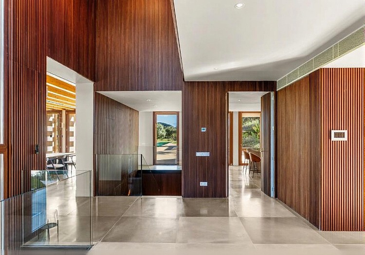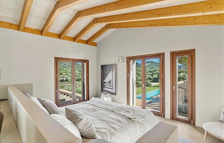 Das Anwesen liegt auf einem rund 60.000 m² großen Grundstück mit Panoramablick über die Hügellandschaft. Das Haupthaus (ca. 450 m²) besticht durch offene, lichtdurchflutete Räume, elegante Naturmaterialien und klare Linien.