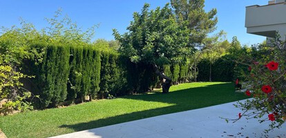 Die Wohnung ist Teil einer kleinen, sehr privaten Anlage mit nur sechs Wohneinheiten. Ein Gemeinschaftspool liegt eingebettet im Grün und ist direkt vom Garten aus zugänglich – perfekt für entspannte Stunden unter der mallorquinischen Sonne. Ein überdachter Stellplatz mit Ladestation sowie ein Abstellraum stehen ebenfalls zur Verfügung.