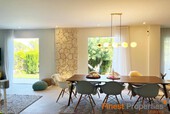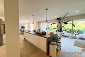 Der offene Wohn- und Essbereich bildet das Herzstück der Wohnung: Helle, fließende Räume mit direktem Zugang zur sonnigen Terrasse und dem liebevoll gestalteten Garten lassen Innen und Außen auf natürliche Weise ineinander übergehen. Die moderne Küche mit Kochinsel, hochwertigen Einbaugeräten und einem integrierten Weinkühlschrank lädt zum Kochen und Genießen ein.